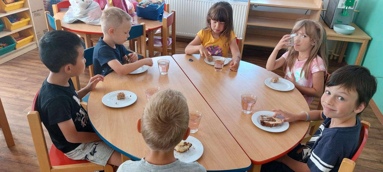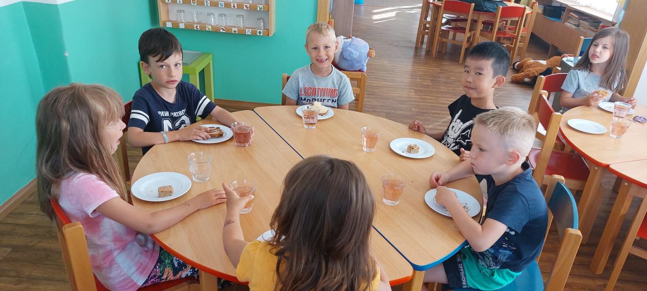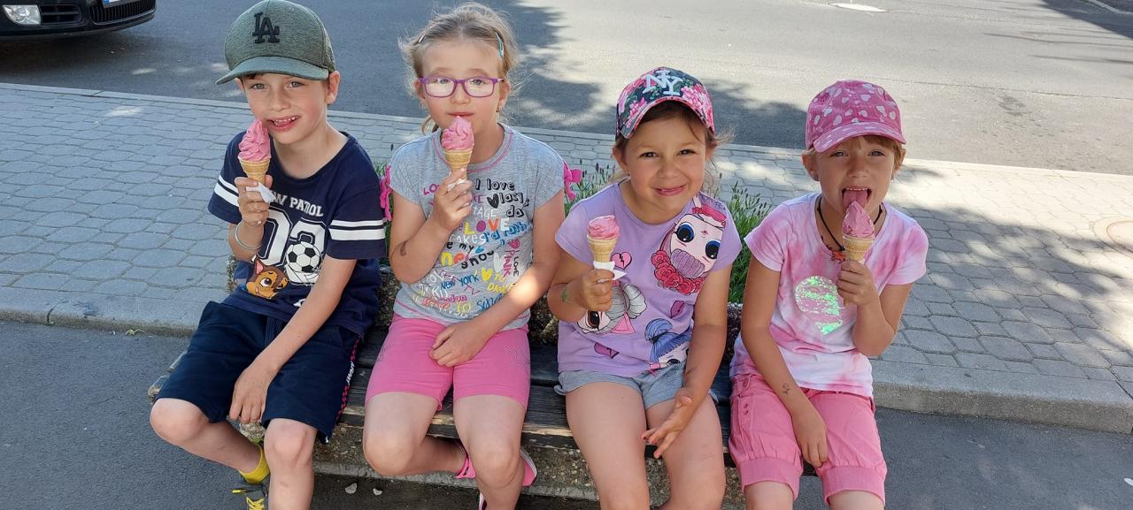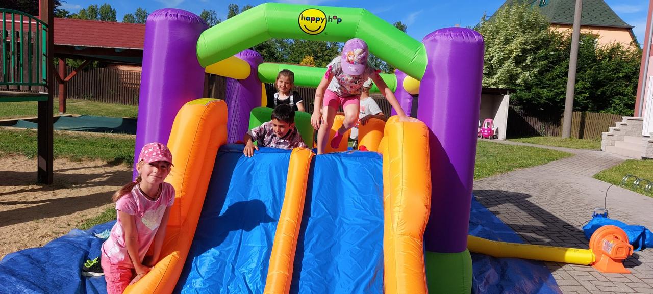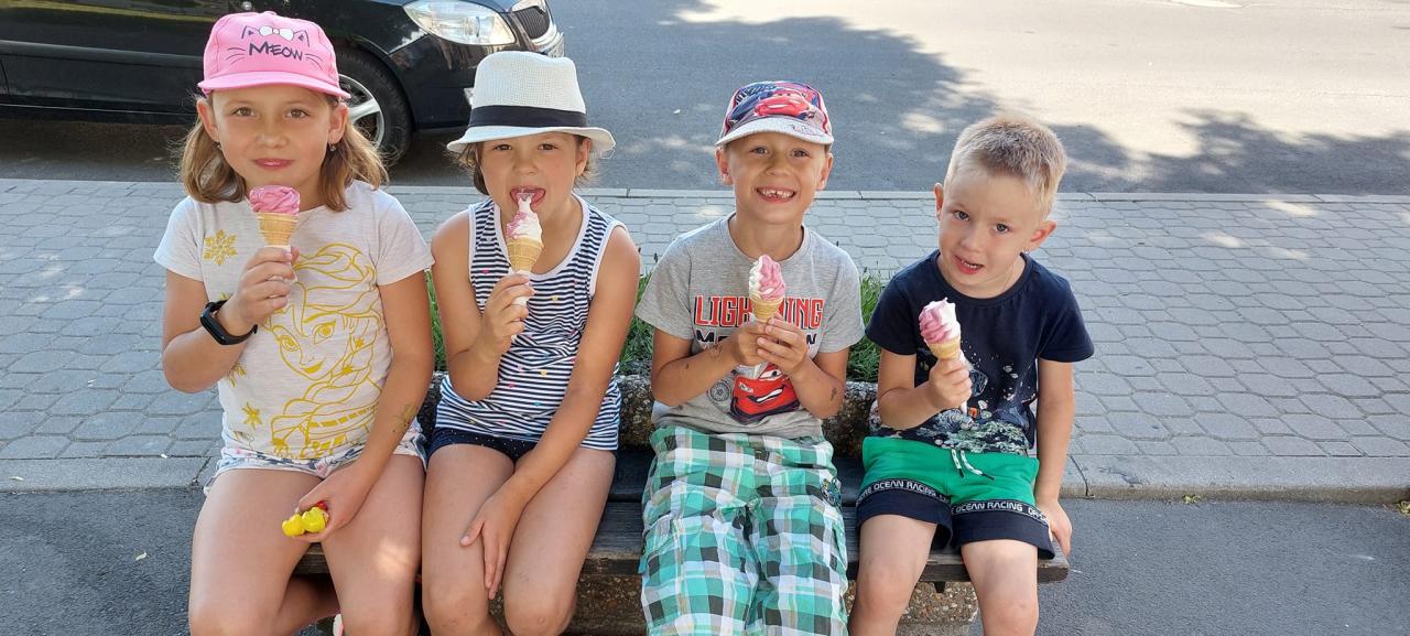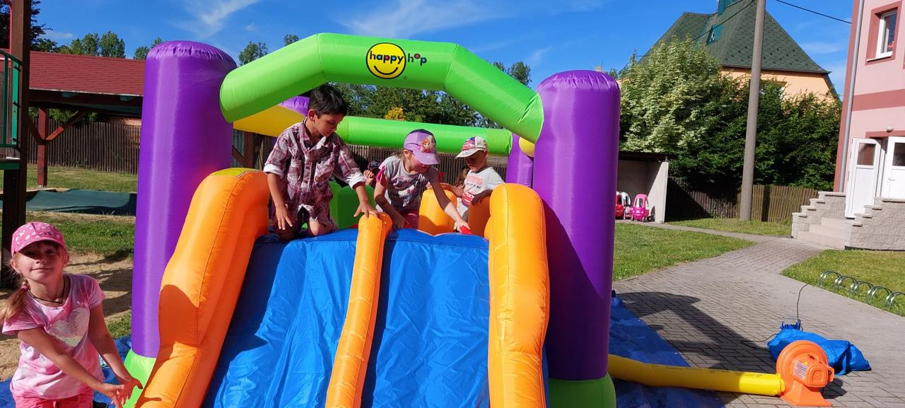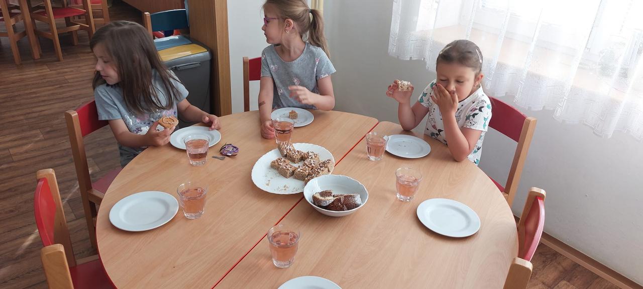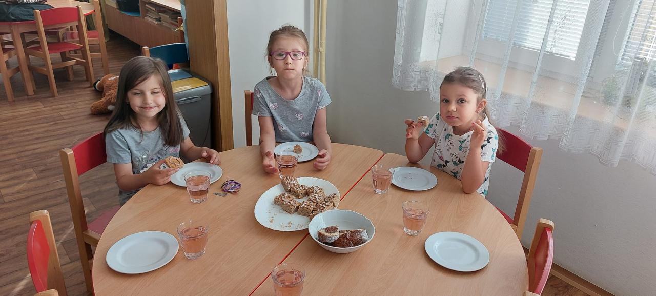 Zmrzlina, hřiště, skákací hrad, pečení buřtů, koupání, prohlídka školky, pohádka.