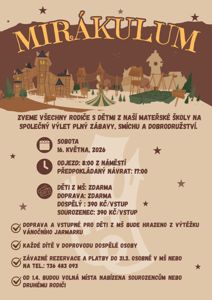 Doprava a vstupné pro děti z MŠ zdarma.